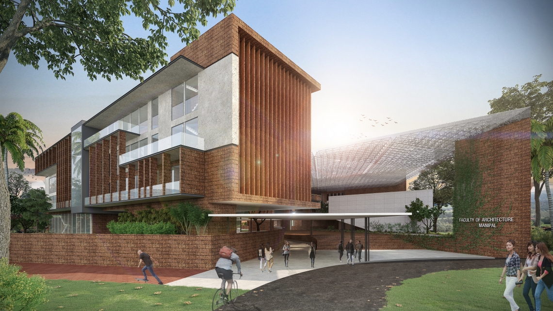 The brief was to create an interesting campus for budding architecture students and create zones for variable forms of interaction in addition to their core program. The design encapsulates that by creating a network of overlapping homotopic spaces intersected with the main public access. The core program hovers above the public spaces and was further connected with secondary and tertiary streets. The morphology was derived by creating a series of courtyards alternating with built classrooms to allow all spaces to be connected with the open. This, in addition to the main orientation of the building, allows for breeze to permeate the entire structure and reduces the surface area exposed to the harsh hot and humid climate of Manipal. The materials were derived from the vernacular archetype but reinvented to suit the modern aesthetic. The design explores concepts like shade and shadow, material exploration and alternates between large grandiose spaces to the small and intimate scale to create a faculty building that is both educational and fun to study in.